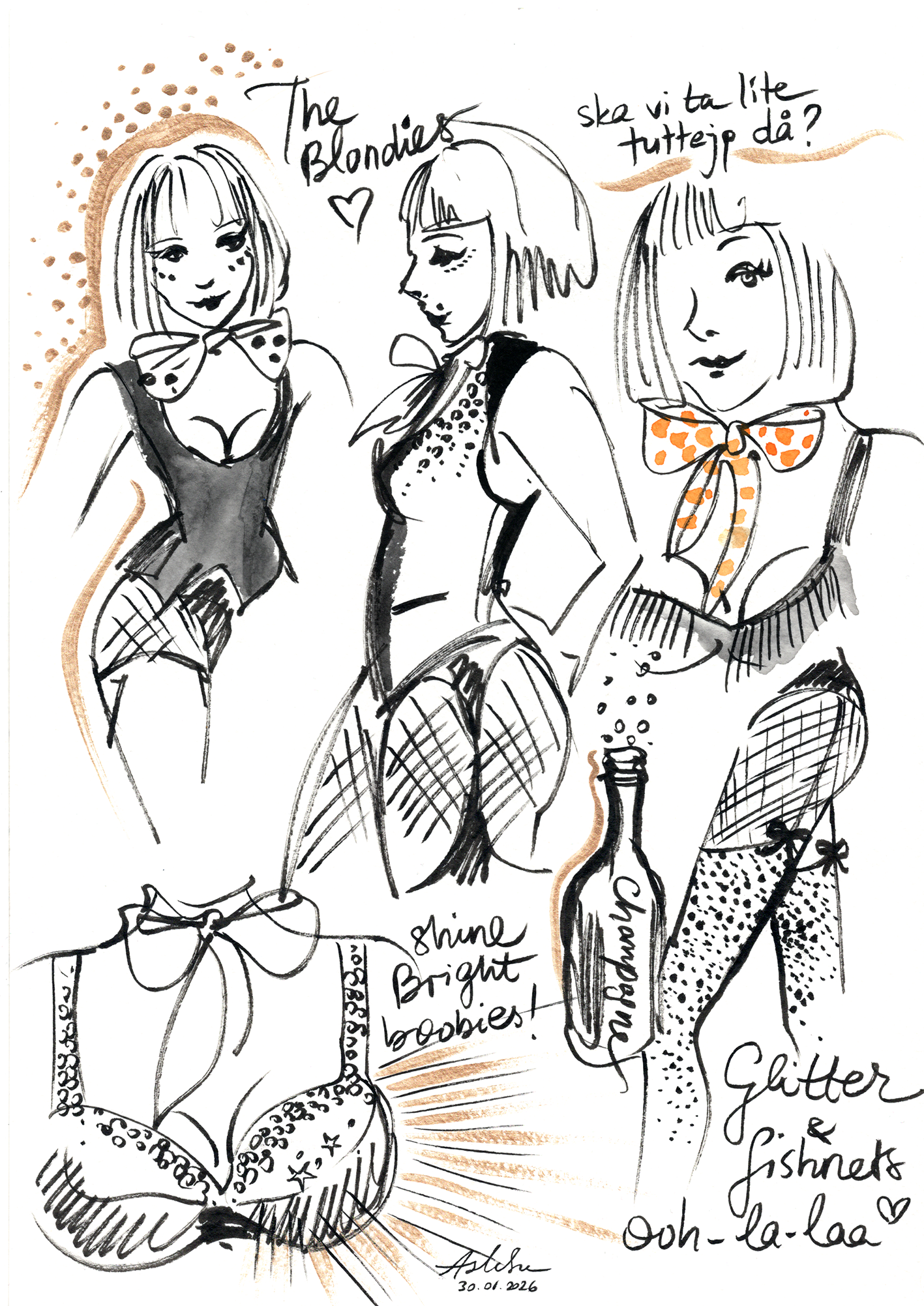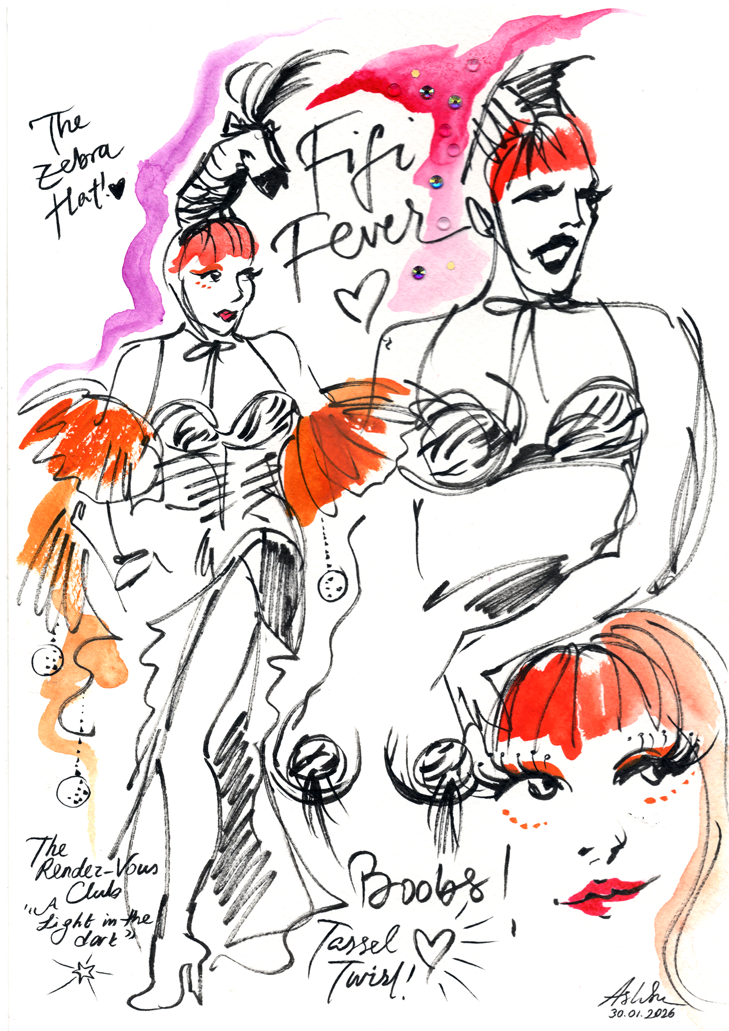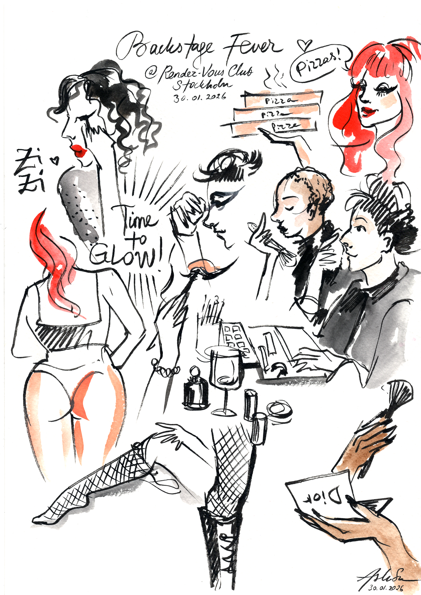 A vibrant mix of impressions from Burlesque & Drag shows, stylish women I spot on the street, glimpses of the attendees from a Halloween party at the Hässelby Slott, and some sketches of the living, breathing models at the various croquis sessions which I have attended, which many of them are the ones I have organized myself. Capturing life and spectacles on the very moment that they’re happening is one of my favorite things.