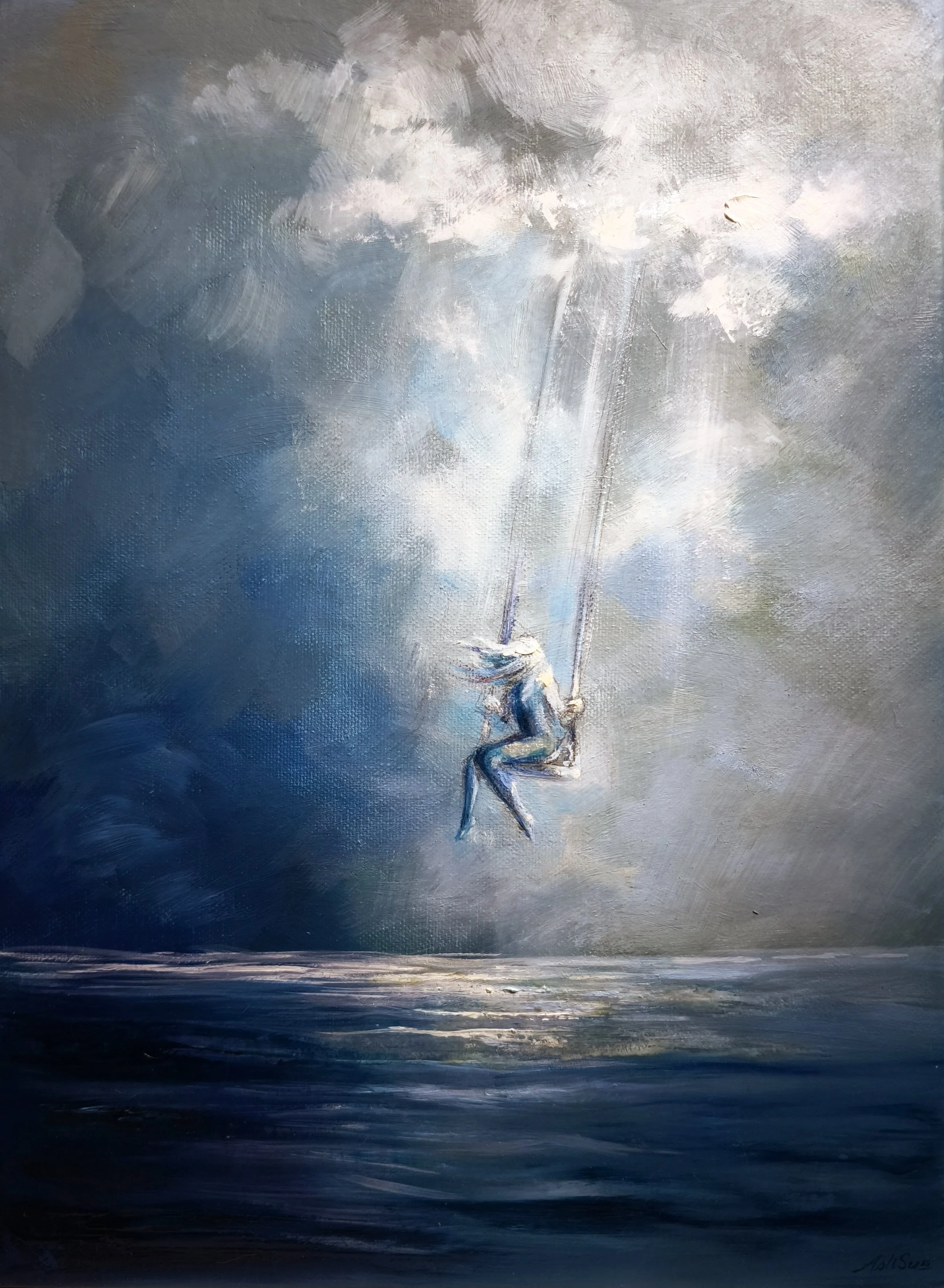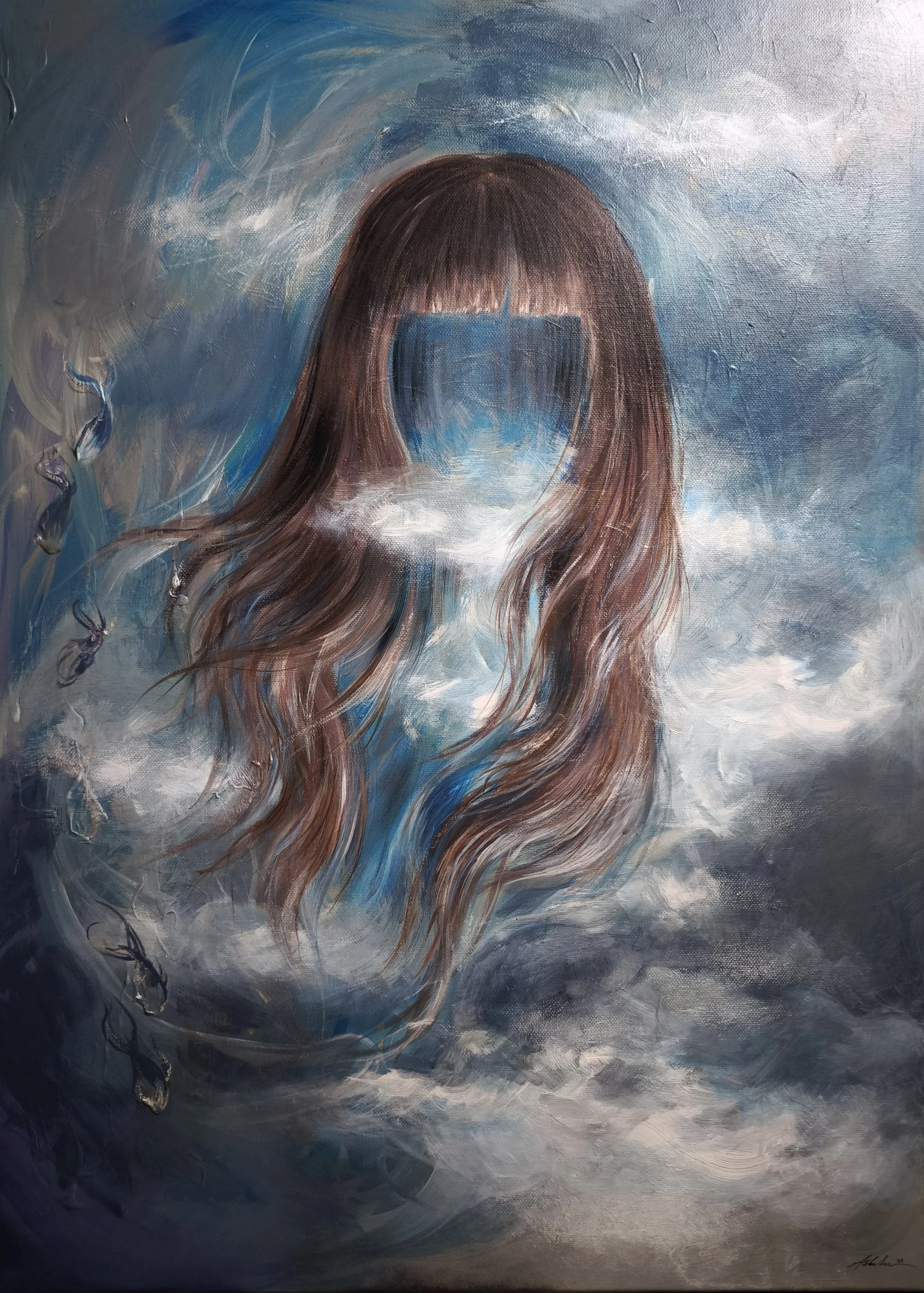 As an artist, I feel a deep connection to the skies above and the waters below, to the places where light lingers and the world feels weightless. For my paintings I often imagine scenes where the human figure becomes one with these realms, exploring harmony, escapism, drifting memories, the gentle magic of solitude, and the delicate balance between dreams and reality.